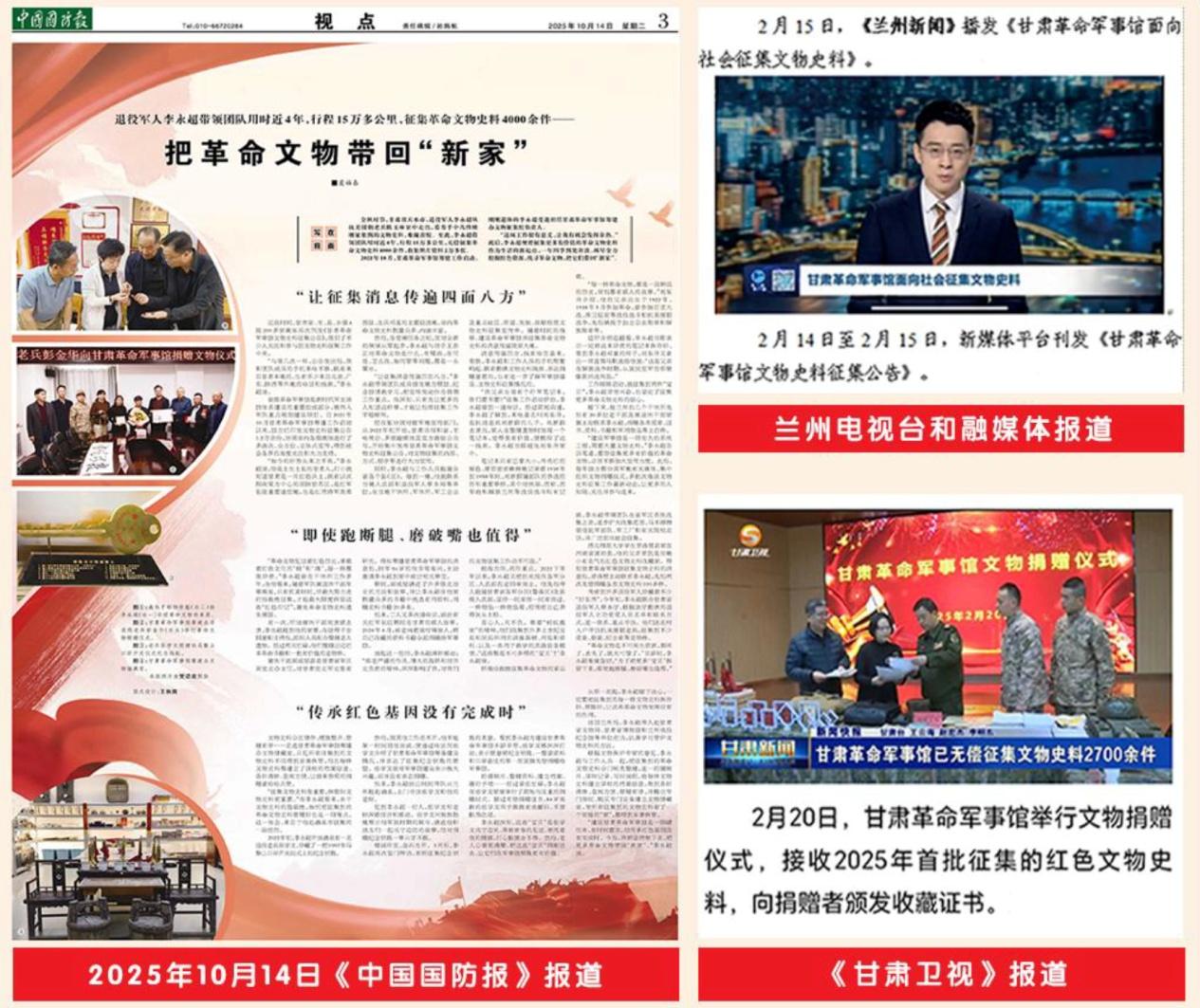 征集類別包括古近代軍事類、革命活動類、軍事作戰(zhàn)類、軍史影像類、軍事人物類、證章證書類、革命生活類、國防建設(shè)類、專項任務(wù)類以及其他能反映甘肅軍事歷史文化和重要歷史事件的文物史料。