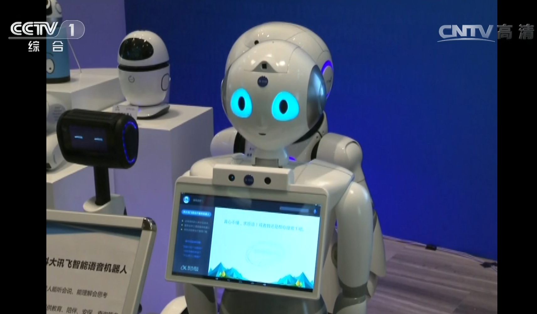 △ 2016年4月26日,習(xí)近平總書記考察中國科技大學(xué)。這是與總書記互動的機器人“小曼”。(視頻截圖)
