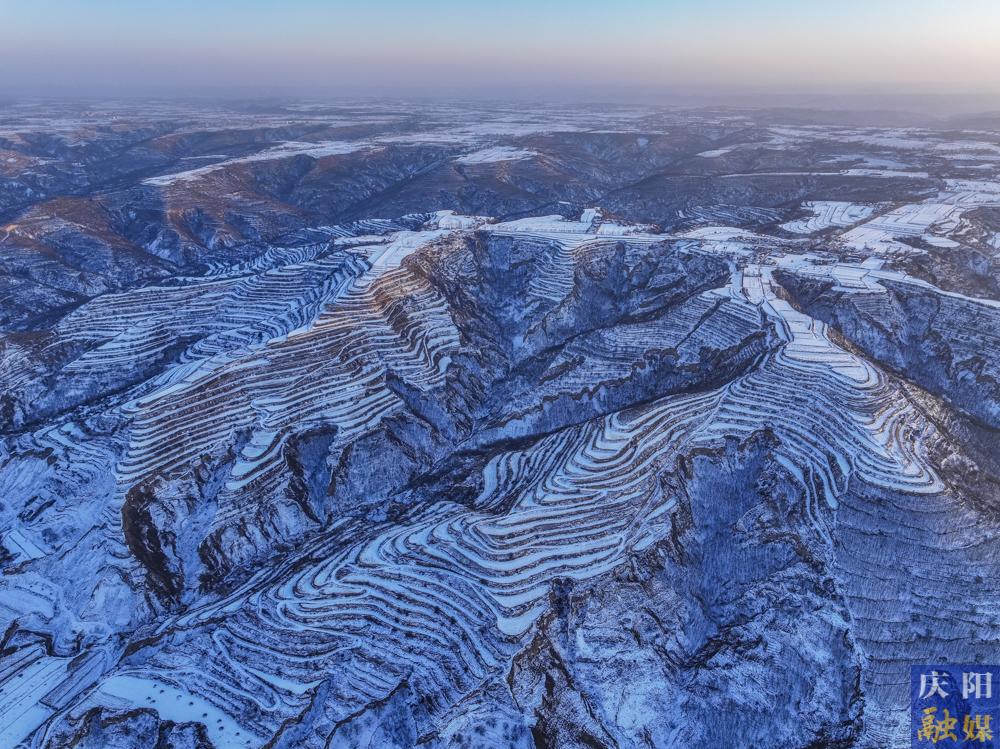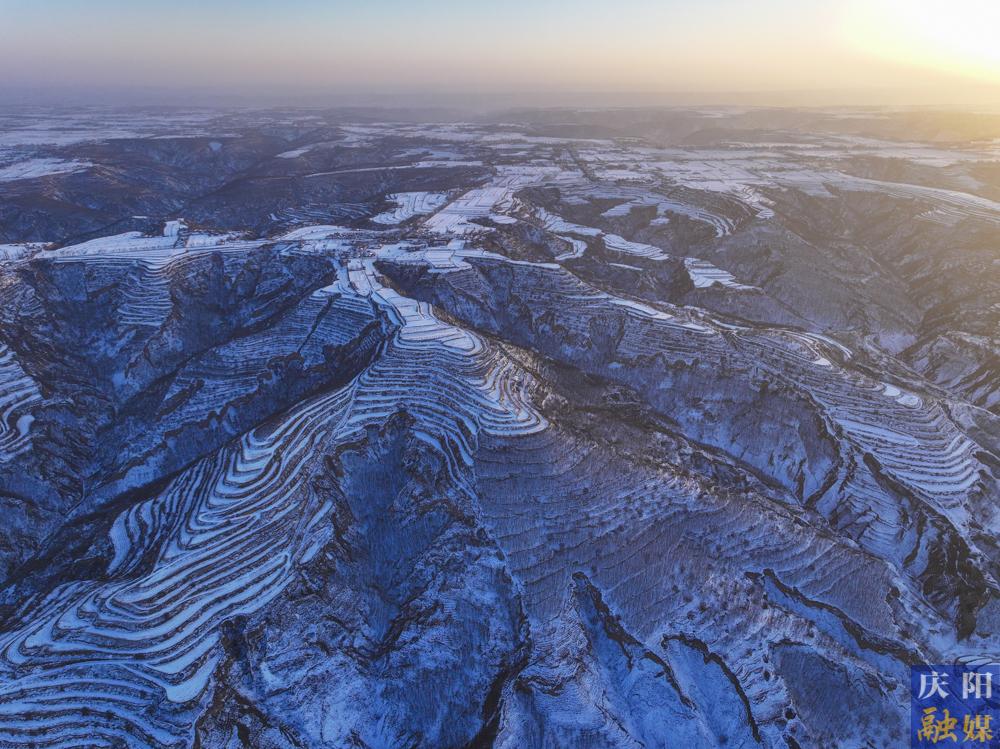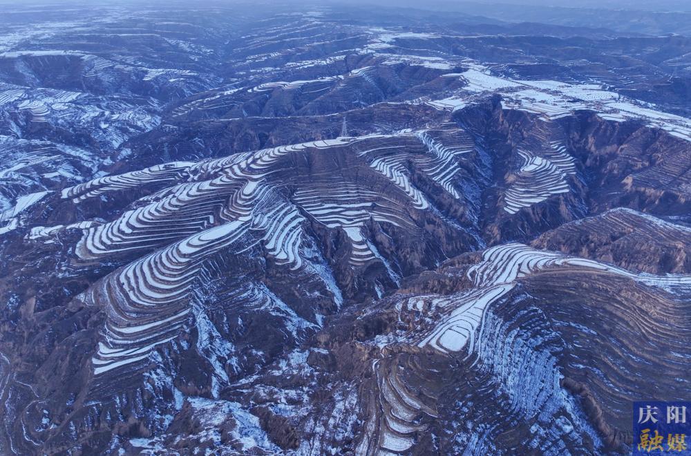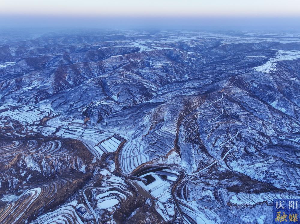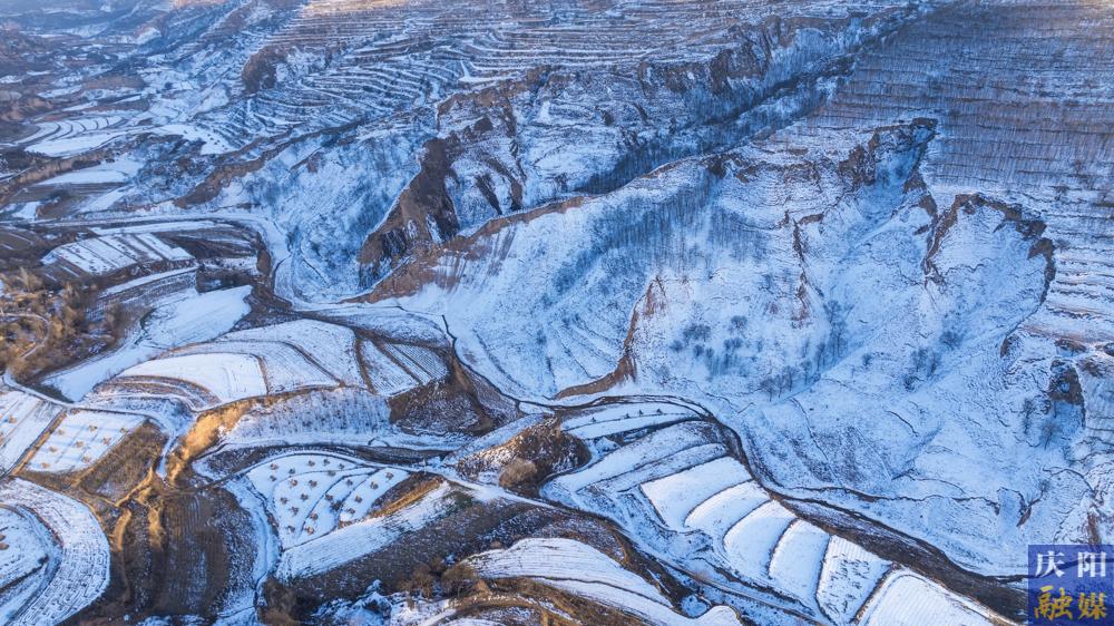 慶陽網(wǎng)訊(慶陽融媒記者 陳飛)1月10日,俯瞰雪后鎮(zhèn)原縣南川鄉(xiāng),仿佛是一個被塵世遺忘的仙境。層層疊疊的梯田在白雪的覆蓋下,如同巨大的白色階梯,從山腳一直延伸到山頂,與遠處的山巒融為一體,宛如一條沉睡的白色巨龍橫臥在天地之間。那蓬松的積雪順著田壟的曲線蜿蜒伸展,仿佛是大自然用最細膩的筆觸勾勒出的水墨畫卷。田埂上的枯草,在雪的映襯下,顯得更加枯黃,卻又增添了一種別樣的堅韌之美。偶爾有微風吹過,卷起細碎的雪沫,在梯田間流轉,仿佛是雪花在翩翩起舞。