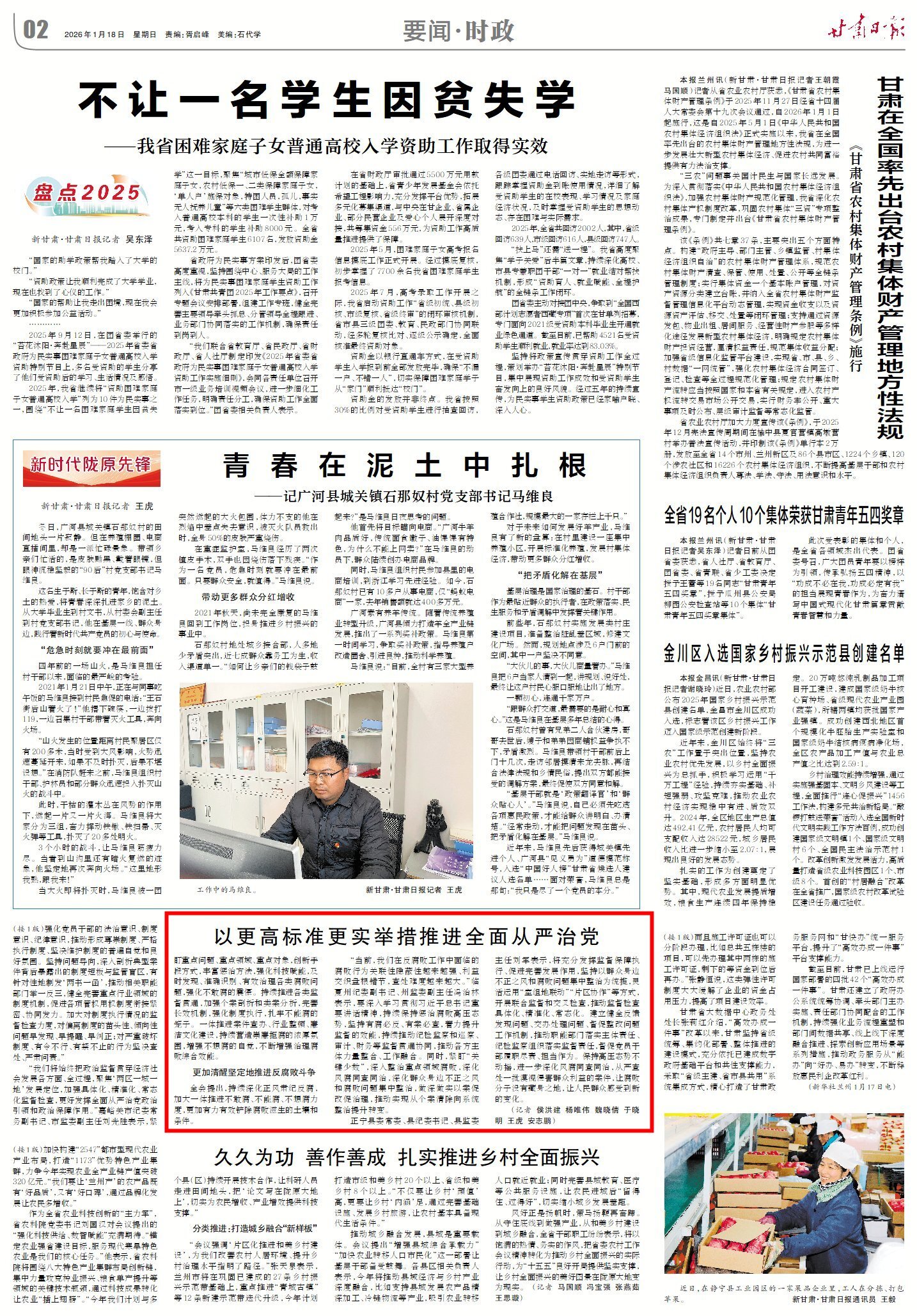 “貫徹落實黨中央重大決策部署,是維護黨中央權威和集中統(tǒng)一領導的根本要求。”定西市委常委、市紀委書記、市監(jiān)委主任洪星表示,全市紀檢監(jiān)察機關將堅決扛牢政治監(jiān)督首要職責,緊緊圍繞貫徹落實習近平總書記對甘肅重要講話重要指示批示精神,精準聚焦“十五五”時期目標任務,建立政治監(jiān)督重點任務清單,完善“發(fā)現(xiàn)問題—督促整改—全程跟蹤”的監(jiān)督閉環(huán)體系,用好“以事督人、明責踐責、促人干事”機制,精準發(fā)現(xiàn)、嚴肅查處不落實的事、不落實的人和班子,旗幟鮮明糾溫差、正偏差、防落差,確保黨中央重大決策部署不折不扣在定西落地生根、開花結果。