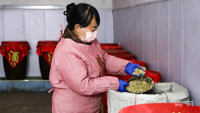 章生花查看正發(fā)酵的酒糟(央廣網(wǎng)發(fā) 郭海霞 攝)