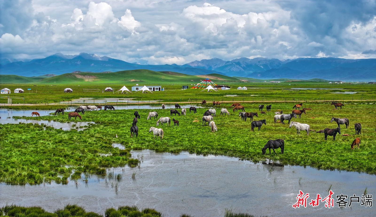 藍天白云下的瑪曲縣河曲馬場風光旖旎。(資料圖)新甘肅·甘肅日報記者 田蹊