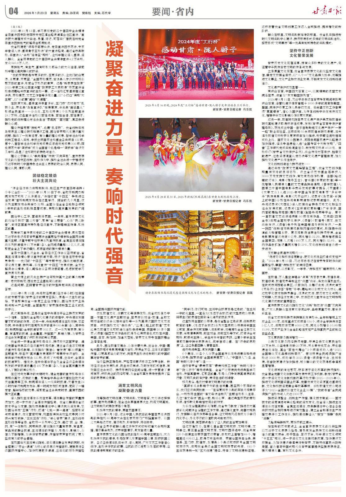 站在新的歷史起點上,全省宣傳思想文化戰(zhàn)線將堅持以習近平文化思想為指導,肩負激發(fā)全民族文化創(chuàng)新創(chuàng)造活力的重大使命,實干擔當、篤行不怠,科學謀劃文化領域“十五五”規(guī)劃,進一步深化文化體制機制改革,加快建設文旅強省,為加快建設幸福美好新甘肅、不斷開創(chuàng)富民興隴新局面,奮力譜寫中國式現(xiàn)代化甘肅篇章提供堅強思想保證、強大精神力量、有利文化條件。