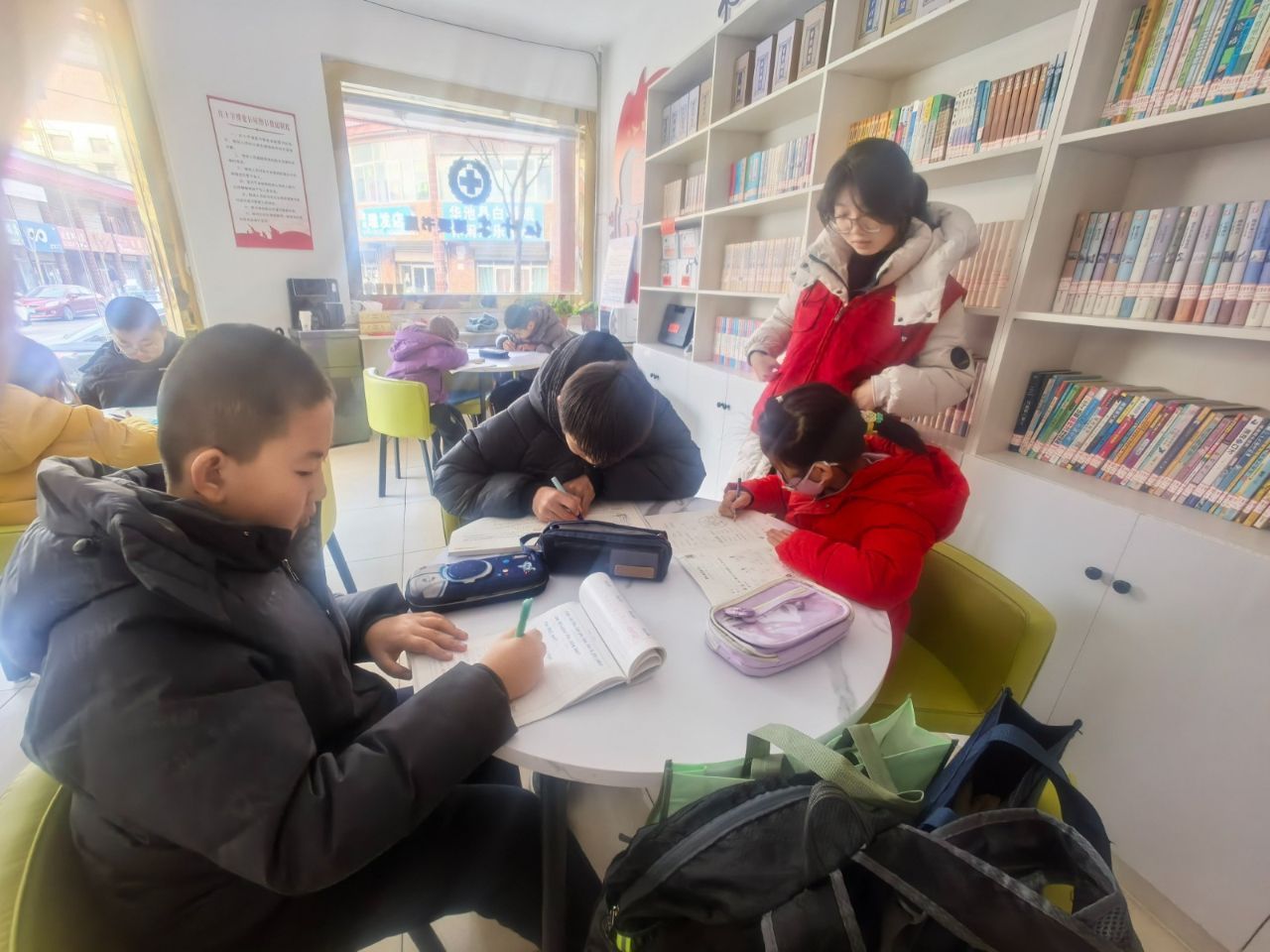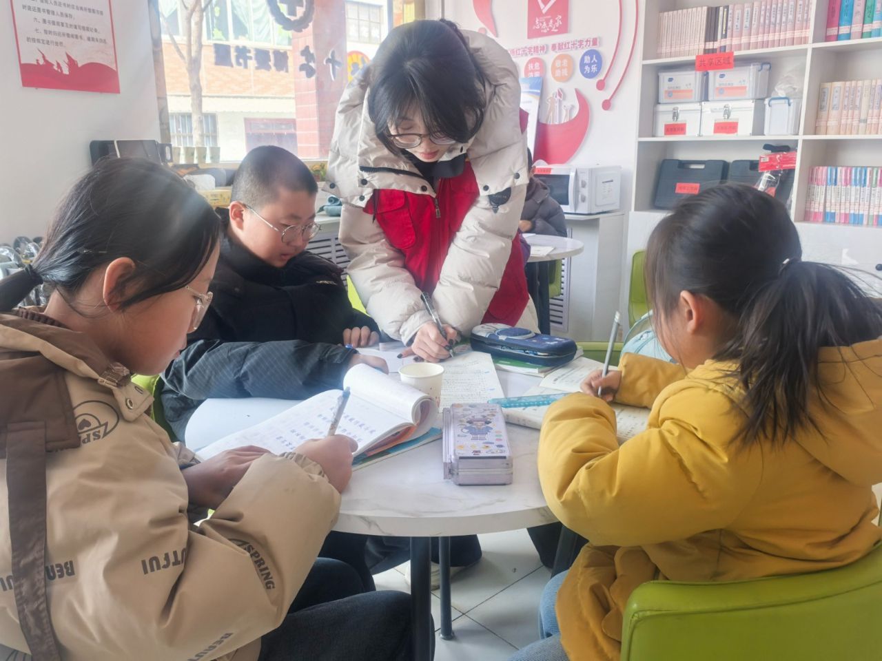 本次公益托管班以小學(xué)1-6年級(jí)寒假作業(yè)專業(yè)輔導(dǎo)、古詩(shī)誦讀為主要內(nèi)容,由招募的大學(xué)生志愿者為孩子們進(jìn)行一對(duì)一、一對(duì)多的課業(yè)答疑,幫助孩子們梳理知識(shí)點(diǎn)、解決作業(yè)難題,培養(yǎng)良好的讀書習(xí)慣。同時(shí),社區(qū)工作人員會(huì)全程做好陪伴照料、安全管理等工作,讓孩子們?cè)谳p松的氛圍中學(xué)習(xí)、交流,既解決了家長(zhǎng)的后顧之憂,也為孩子們搭建了互助共進(jìn)的學(xué)習(xí)平臺(tái)。“社區(qū)的公益托管班太及時(shí)了,我們平時(shí)忙著打工,根本沒時(shí)間輔導(dǎo)孩子作業(yè),把孩子放在這里,不僅能有人輔導(dǎo)學(xué)習(xí),還能認(rèn)識(shí)新朋友,我們上班也安心多了?!蓖赓u員小李感慨道。