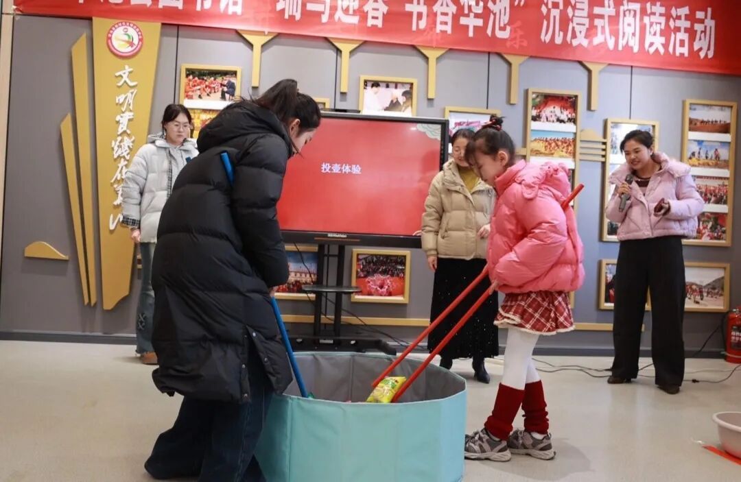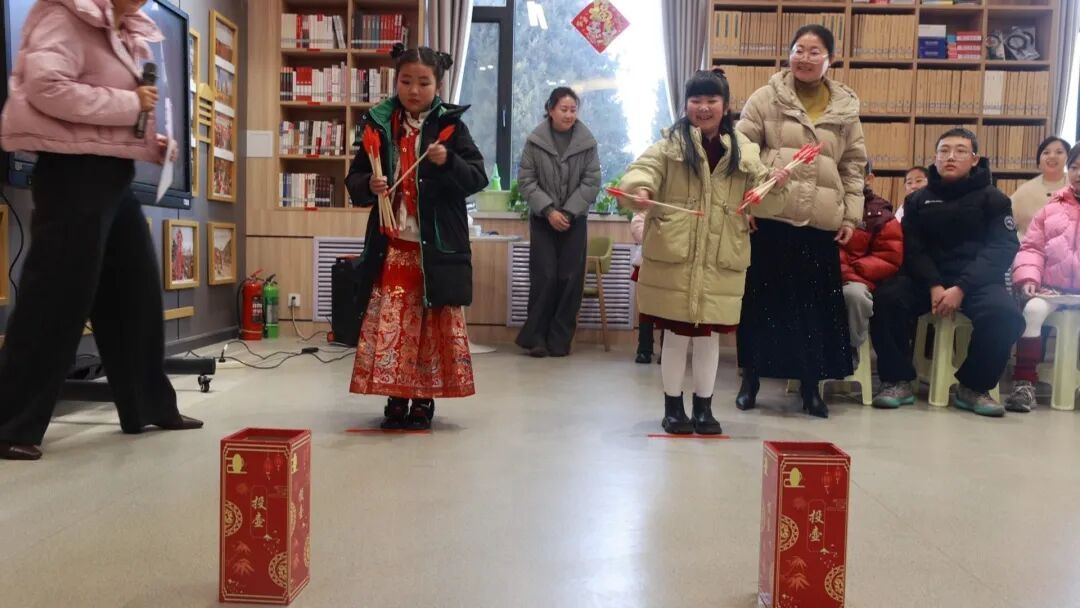 本次活動(dòng)以“沉浸式書香市集”為核心載體,精心設(shè)置四大特色環(huán)節(jié),讓文化傳承與趣味體驗(yàn)雙向賦能。在臘八節(jié)知識(shí)講座現(xiàn)場,圖書館工作人員以通俗易懂的語言追溯節(jié)日起源,用生動(dòng)有趣的民俗故事解讀團(tuán)圓內(nèi)涵,帶領(lǐng)孩子們感受傳統(tǒng)禮儀的獨(dú)特魅力,讓臘八文化在聽講互動(dòng)中入腦入心;閱讀分享環(huán)節(jié)成為孩子們展示自我的舞臺(tái),大家自愿登臺(tái),或分享讀書感悟、或朗誦經(jīng)典片段、或展示才藝特長,稚嫩的聲音里滿是對(duì)文字的熱愛與對(duì)知識(shí)的向往;投壺體驗(yàn)區(qū)更是歡聲笑語不斷,孩子們凝神靜氣、抬手投擲,在還原古人雅趣的同時(shí),憑累計(jì)成績贏取圖書、文創(chuàng)等精美獎(jiǎng)勵(lì),在競技中收獲快樂與成就感;“零食圖書‘筷’樂大作戰(zhàn)”環(huán)節(jié)極具挑戰(zhàn)性,孩子們手持專用筷子,在規(guī)定時(shí)間內(nèi)夾取物品,既鍛煉了動(dòng)手能力與專注力,又在協(xié)作互動(dòng)中增進(jìn)了友誼,現(xiàn)場氛圍熱烈而溫馨。
