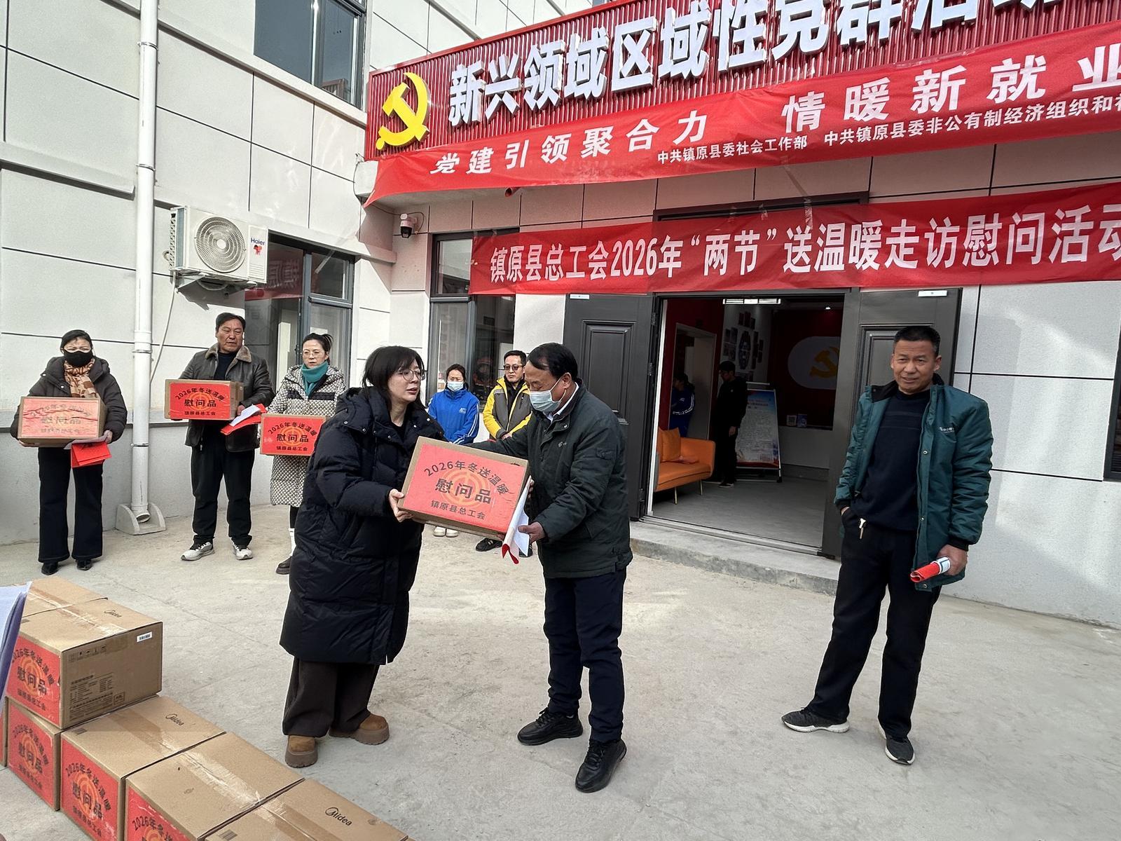 春節(jié)將至,寒意漸濃,關(guān)愛先行。1月27日,鎮(zhèn)原縣新興領(lǐng)域區(qū)域性黨群活動服務中心內(nèi)暖意融融,由鎮(zhèn)原縣總工會、鎮(zhèn)原縣社會工作部聯(lián)合開展的2026年“兩節(jié)”送溫暖走訪慰問活動在此舉行。活動以“黨建引領(lǐng)、工會牽頭、社會參與”為理念,為外賣騎手、快遞員等新就業(yè)形態(tài)勞動者送去慰問品、新春“?!弊?,以及專業(yè)心理健康關(guān)愛服務,在寒冬中搭建起黨和政府、社會各界與新就業(yè)群體的“連心橋”,讓奔波在城市各處的勞動者切實感受到多元關(guān)懷與新春暖意。