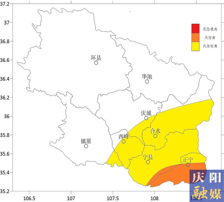 ▲1月29日至1月30日慶陽(yáng)市雪災(zāi)風(fēng)險(xiǎn)預(yù)警等級(jí)分布圖。