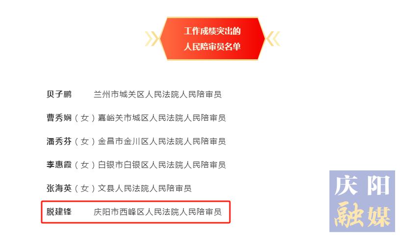 慶陽(yáng)網(wǎng)訊(慶陽(yáng)融媒記者 劉萍凝)近日,慶陽(yáng)市企業(yè)聯(lián)合會(huì)副會(huì)長(zhǎng)脫建鋒被最高人民法院、司法部聯(lián)合授予全國(guó)“人民陪審員工作成績(jī)突出個(gè)人”稱號(hào),成為全國(guó)300名受表彰的突出個(gè)人之一。