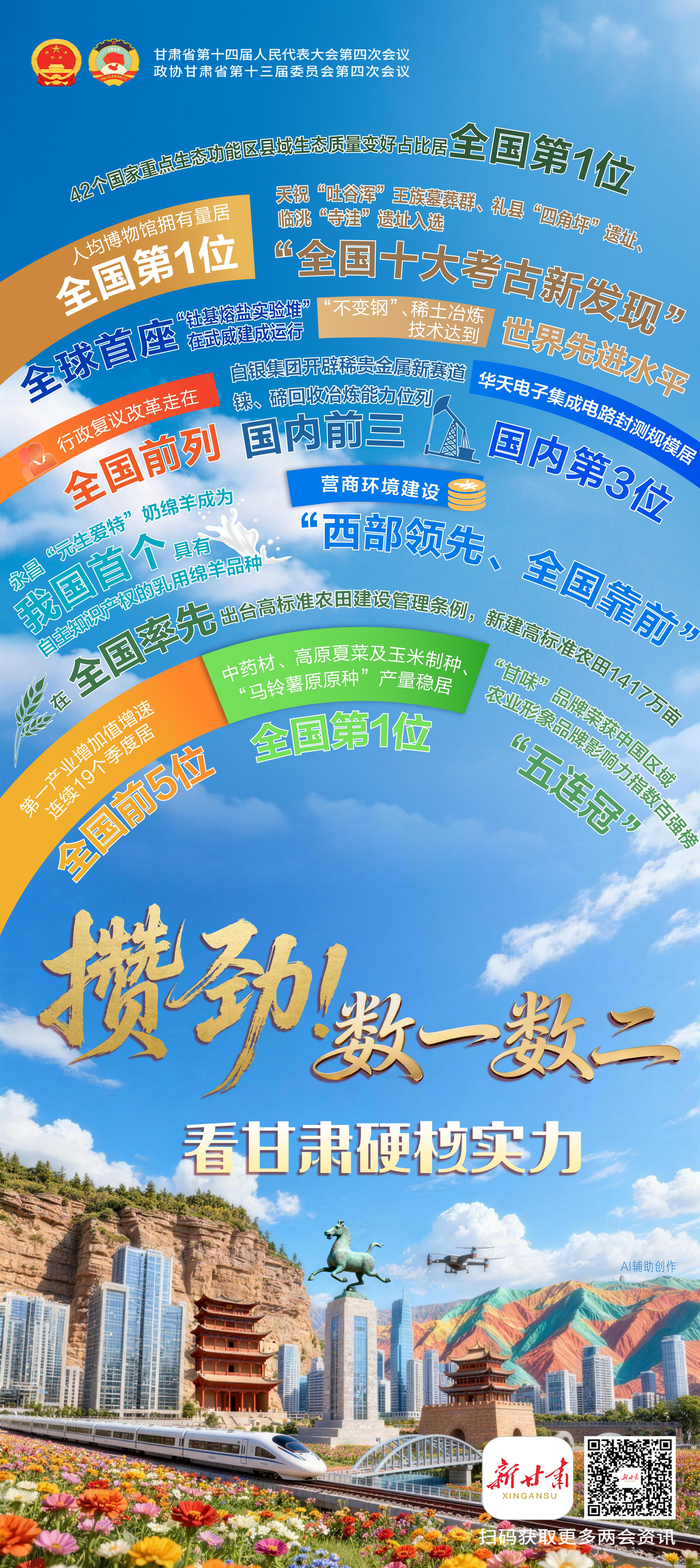 “十四五”期間,甘肅在高質(zhì)量發(fā)展的賽道上全力奔跑,一個個“第一”“領(lǐng)先”,拼出了甘肅不甘落后、追趕進位的生動圖景。一起通過這份成績單,感受甘肅的澎湃動能!