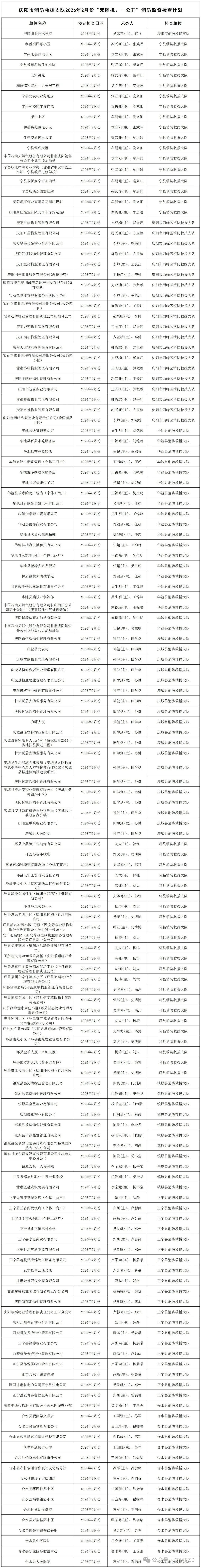 慶陽(yáng)市消防救援支隊(duì)2026年1月份“雙隨機(jī)、一公開(kāi)”消防監(jiān)督檢查結(jié)果及2月份監(jiān)督抽查計(jì)劃公示