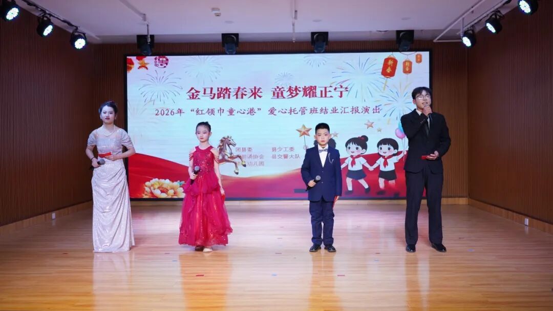 2月4日,“金馬踏春來 逐夢耀正寧”2026“紅領(lǐng)巾童心港”愛心托管班結(jié)業(yè)匯報演出在縣城博苑幼兒園精彩上演。本次活動由團(tuán)縣委、縣少工委主辦,縣朗誦協(xié)會、縣交警大隊、博苑幼兒園協(xié)辦。
