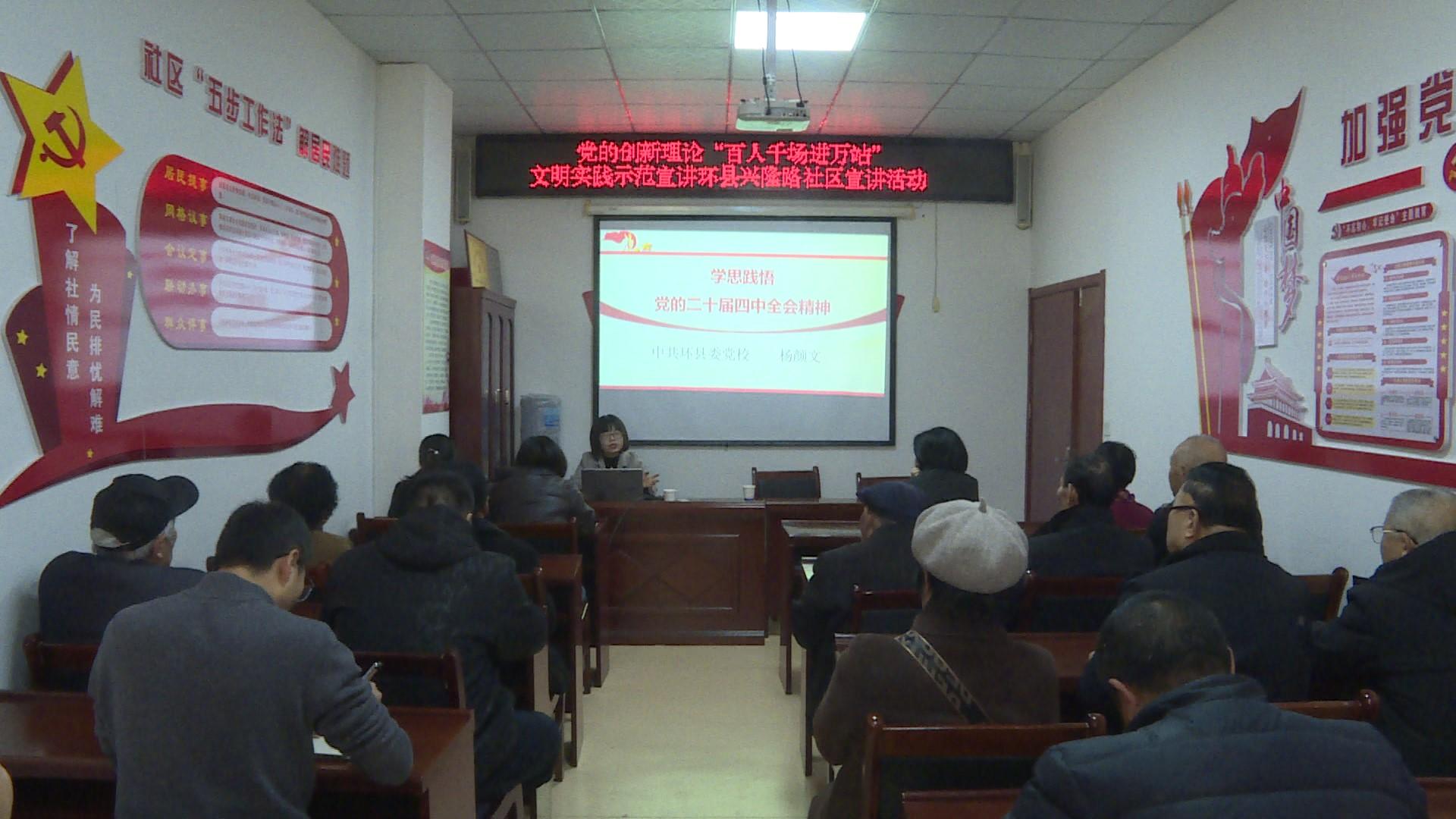 2月5日,環(huán)縣興隆路社區(qū)舉行“百人千場進萬站”文明實踐示范宣講活動。推動黨的創(chuàng)新理論融入群眾日常生活。