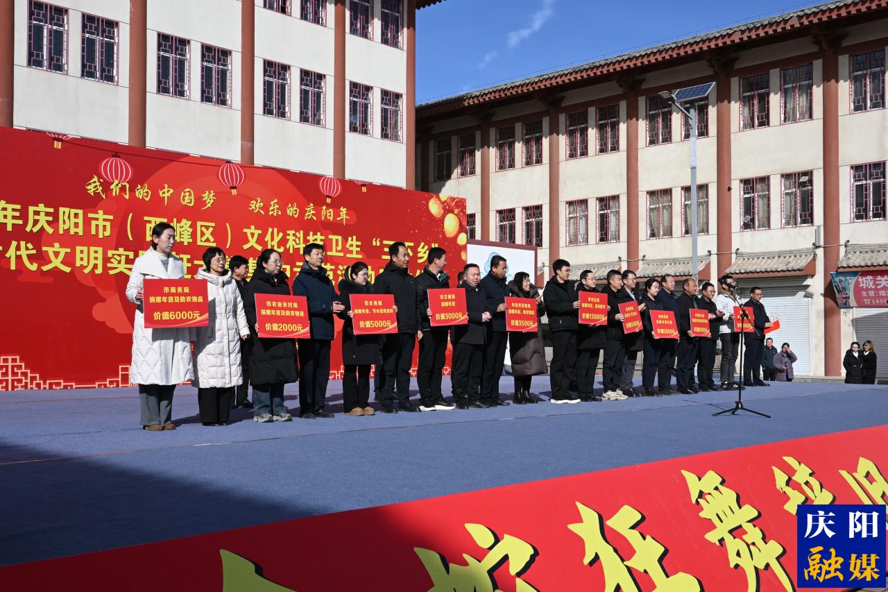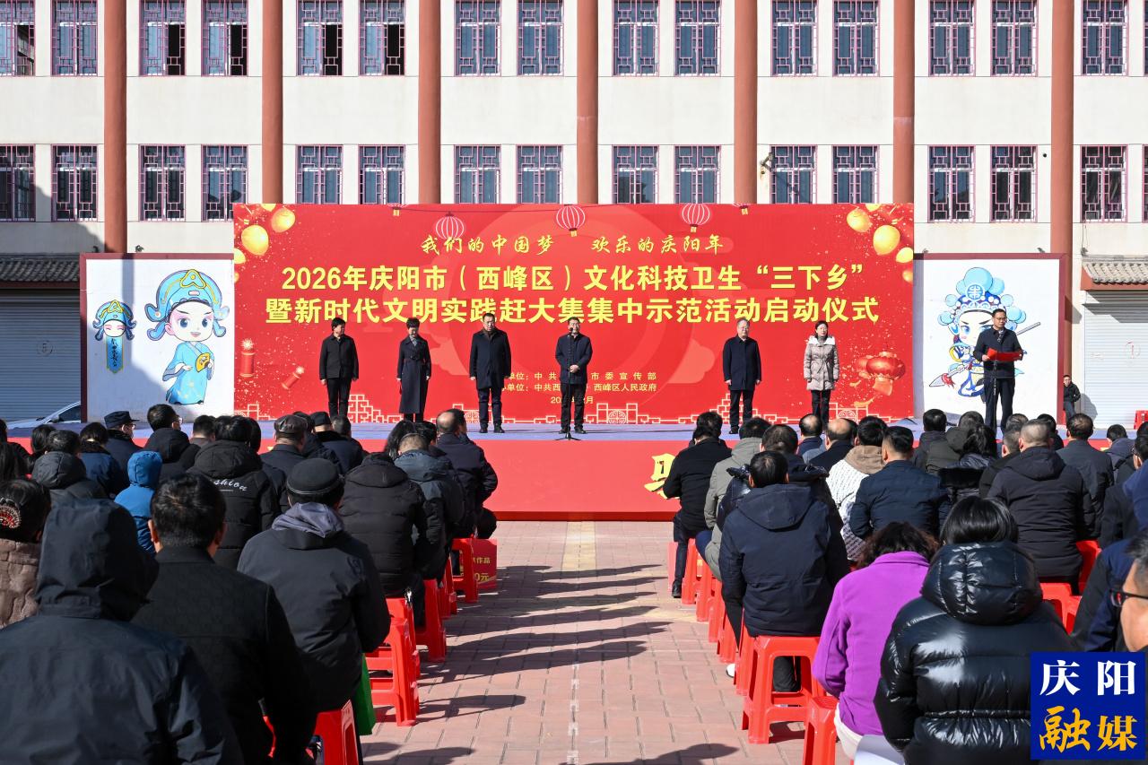 春意漸濃,年味日盛。2月8日,“我們的中國夢 歡樂的慶陽年”2026年慶陽市(西峰區(qū))文化科技衛(wèi)生“三下鄉(xiāng)”暨新時代文明實踐趕大集集中示范活動在西峰區(qū)肖金鎮(zhèn)文化廣場舉行?;顒佑蓱c陽市委、市政府主辦,慶陽市委宣傳部、西峰區(qū)委、區(qū)政府承辦。市、區(qū)相關(guān)部門負責(zé)人、志愿工作者,以及肖金鎮(zhèn)干部職工、農(nóng)民群眾共500余人齊聚一堂,共同迎來了這場情系民生的文化盛宴。
