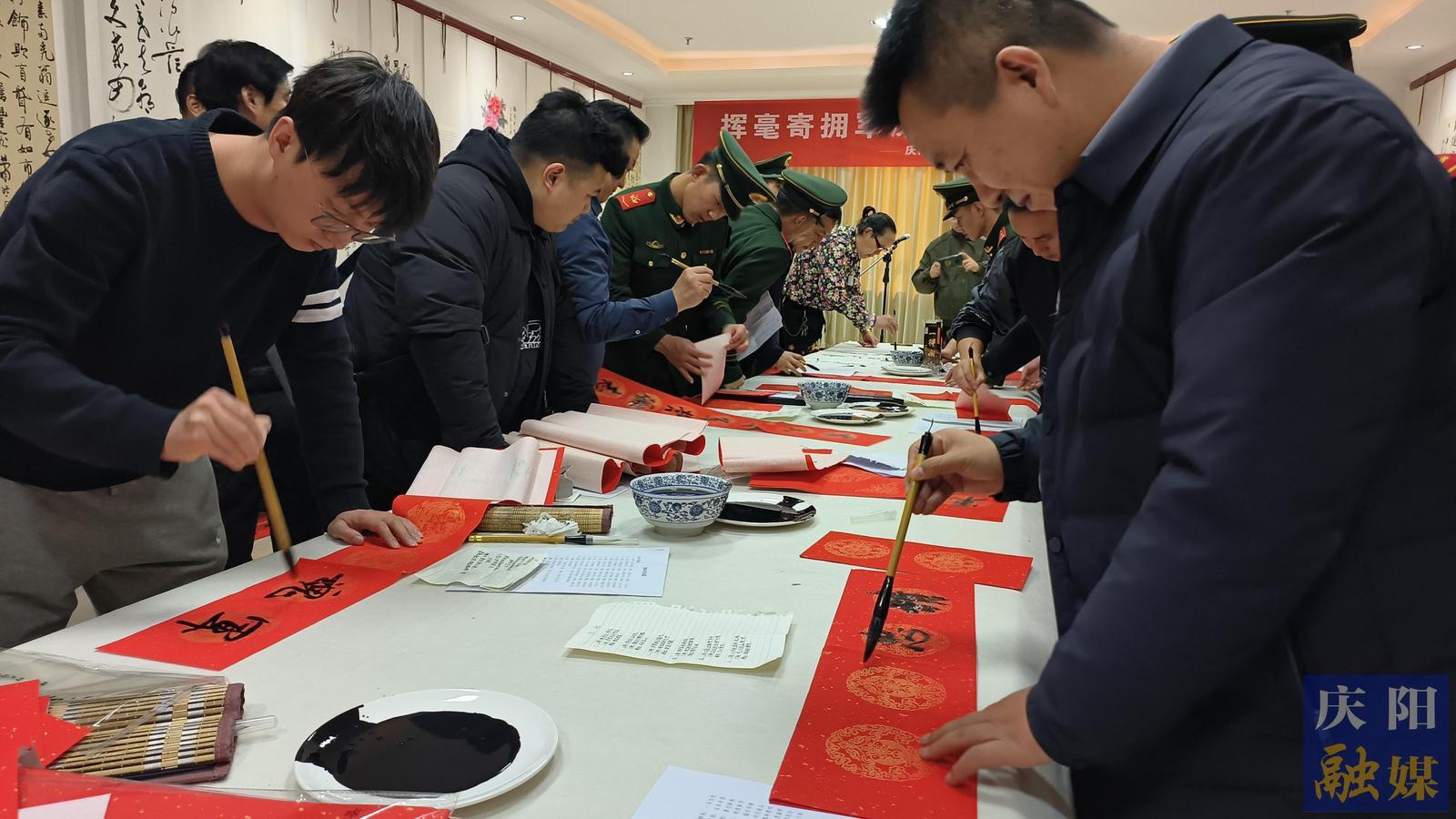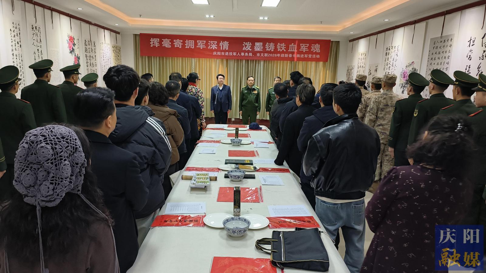 慶陽網(wǎng)訊(慶陽融媒見習(xí)記者 慕雅麗)春回大地暖人間,翰墨飄香潤軍心。2月9日,市退役軍人事務(wù)局聯(lián)合市文聯(lián)舉辦“揮毫寄擁軍深情 潑墨鑄鐵血軍魂”迎新春書畫進(jìn)軍營活動(dòng),邀請書畫名家、文藝愛好者走進(jìn)軍營,以筆會友、以墨傳情,共敘軍民魚水情。