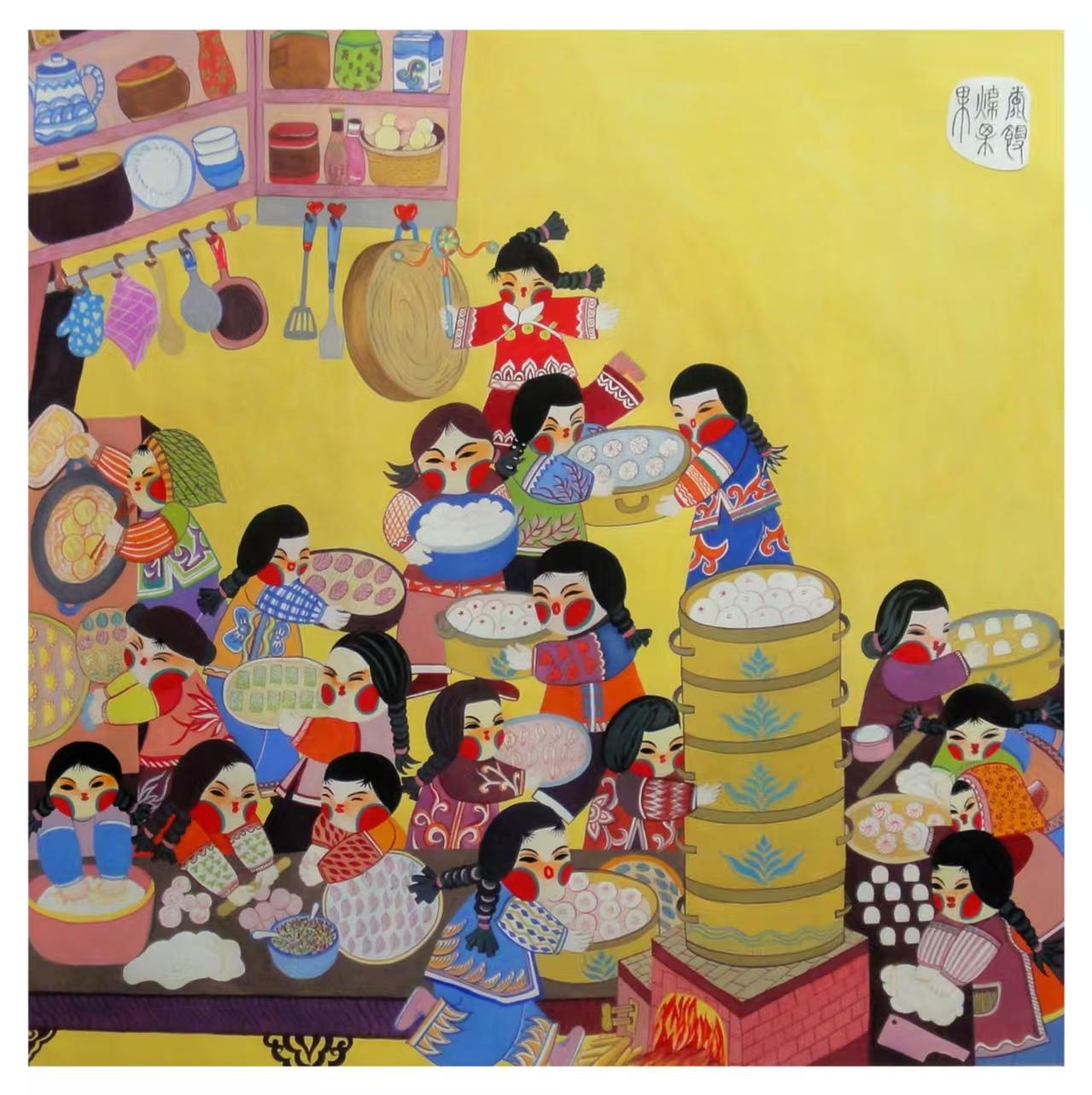 (做年飯):廚房?jī)?nèi)煙火繚繞,婦女們分工協(xié)作,包餃子、蒸饃饃、備佳肴。層層疊疊的蒸籠熱氣騰騰,每一道美食都承載著團(tuán)圓的期盼,醞釀著最濃郁的家的味道。