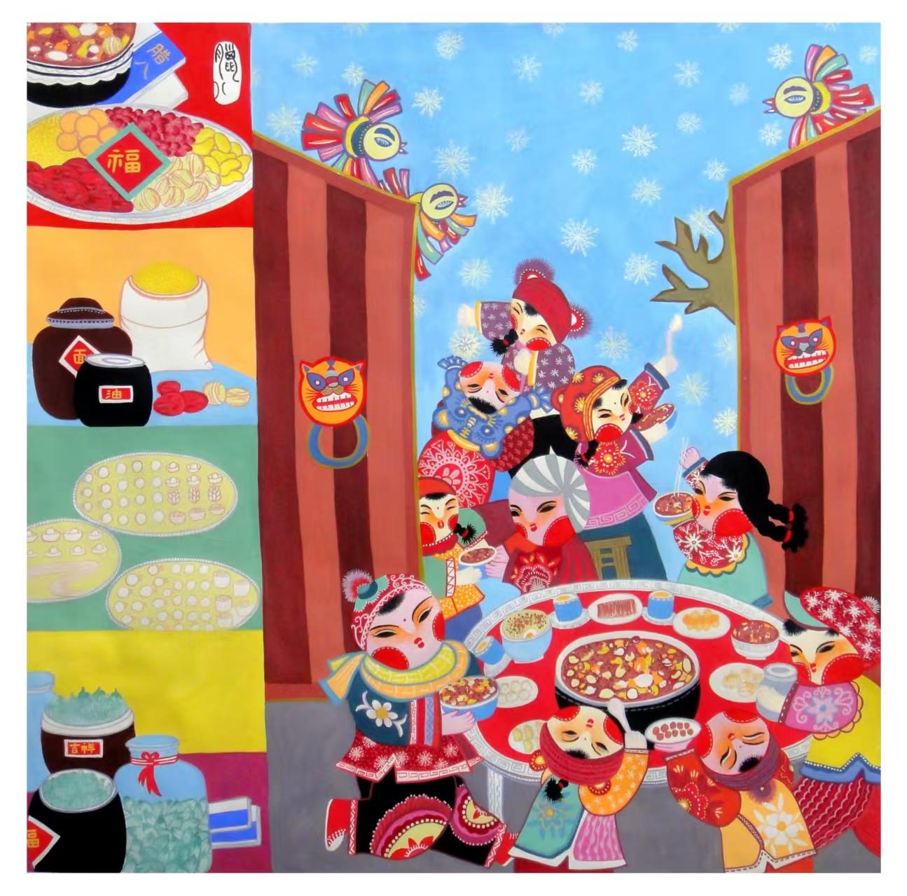 (臘八):臘八佳節(jié),隴原人家圍坐桌前共享臘八粥。五谷雜糧熬煮的熱粥香氣四溢,不僅暖了腸胃,更盛滿(mǎn)了對(duì)來(lái)年五谷豐登、闔家安康的美好期許。