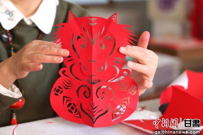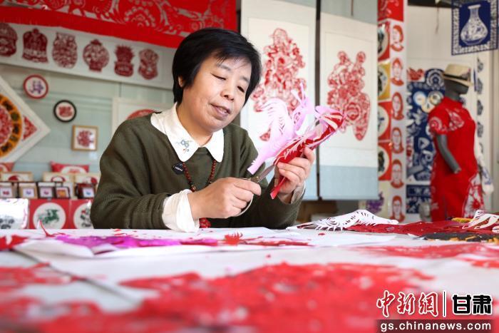 圖為國(guó)家級(jí)非物質(zhì)文化遺產(chǎn)慶陽剪紙代表性傳承人馬路創(chuàng)作新春主題窗花。盤小美 攝