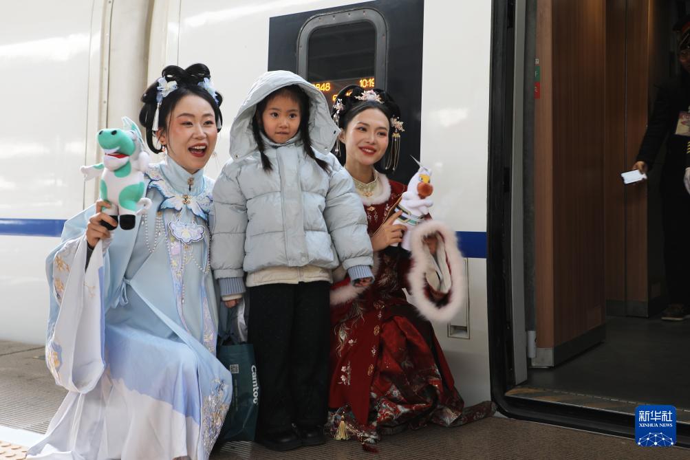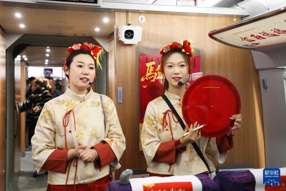 2月9日,由中國鐵路蘭州局集團有限公司、甘肅省文化和旅游廳、甘肅省文物局聯(lián)合打造的“高鐵流動博物館”G848次列車從蘭州西站發(fā)車,駛往廣州南站。敦煌研究院、甘肅省博物館等9家甘肅當?shù)氐膰乙患壊┪镳^,將隴原文脈“搬上”飛馳列車,讓旅客在出行中觸摸歷史的溫度,讓傳統(tǒng)年俗在春運車廂里煥發(fā)新彩。