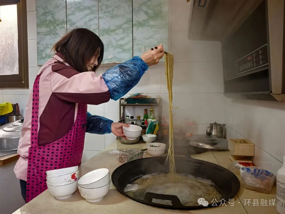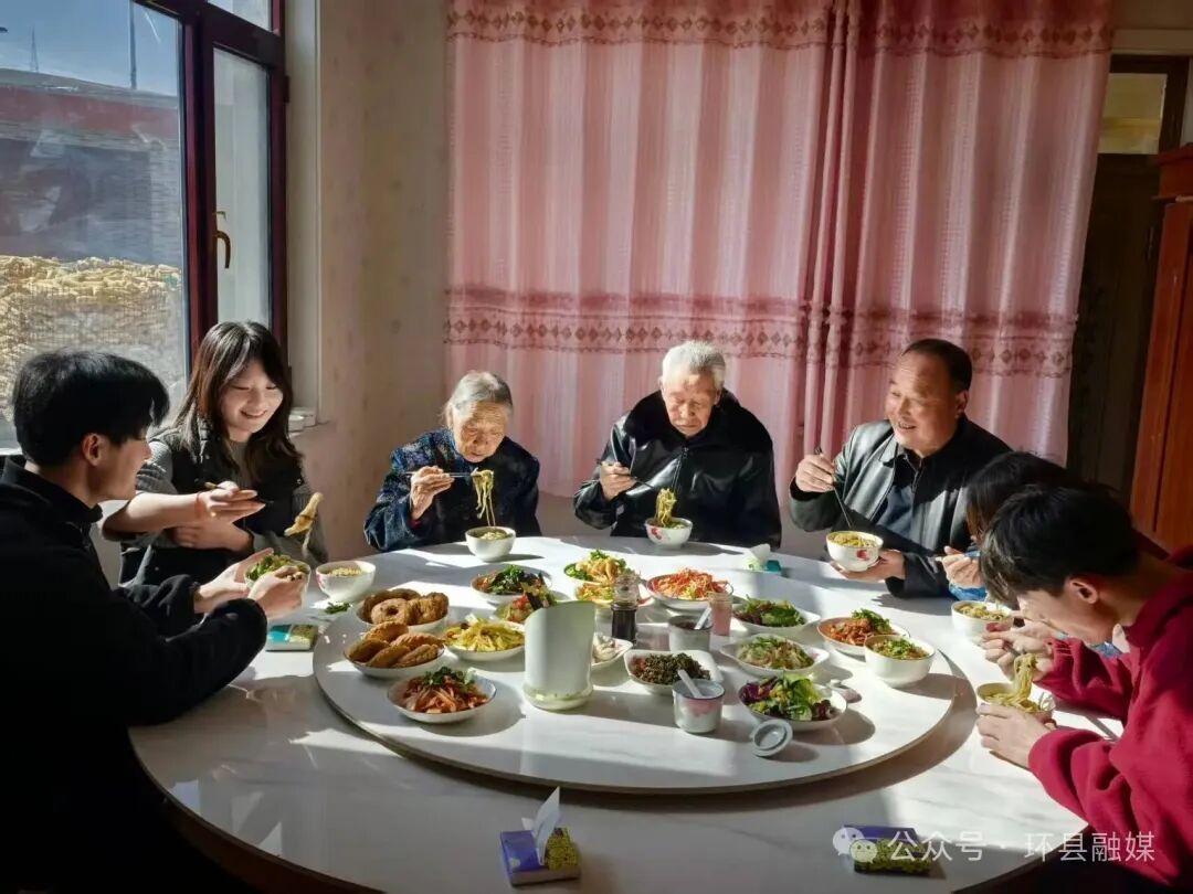 “開(kāi)飯咯!”隨著一聲吆喝,一家人圍坐在豐盛的餐桌旁。筋道爽滑的饸饹面,澆上吳麗娟炒得噴香撲鼻、紅油汪汪的羊肉臊子,再配上她親手腌制的各色小菜,酸辣開(kāi)胃,香氣四溢。這不僅僅是一頓飯,更是一年辛勤勞作后最溫暖的犒賞,是團(tuán)圓最生動(dòng)的滋味。