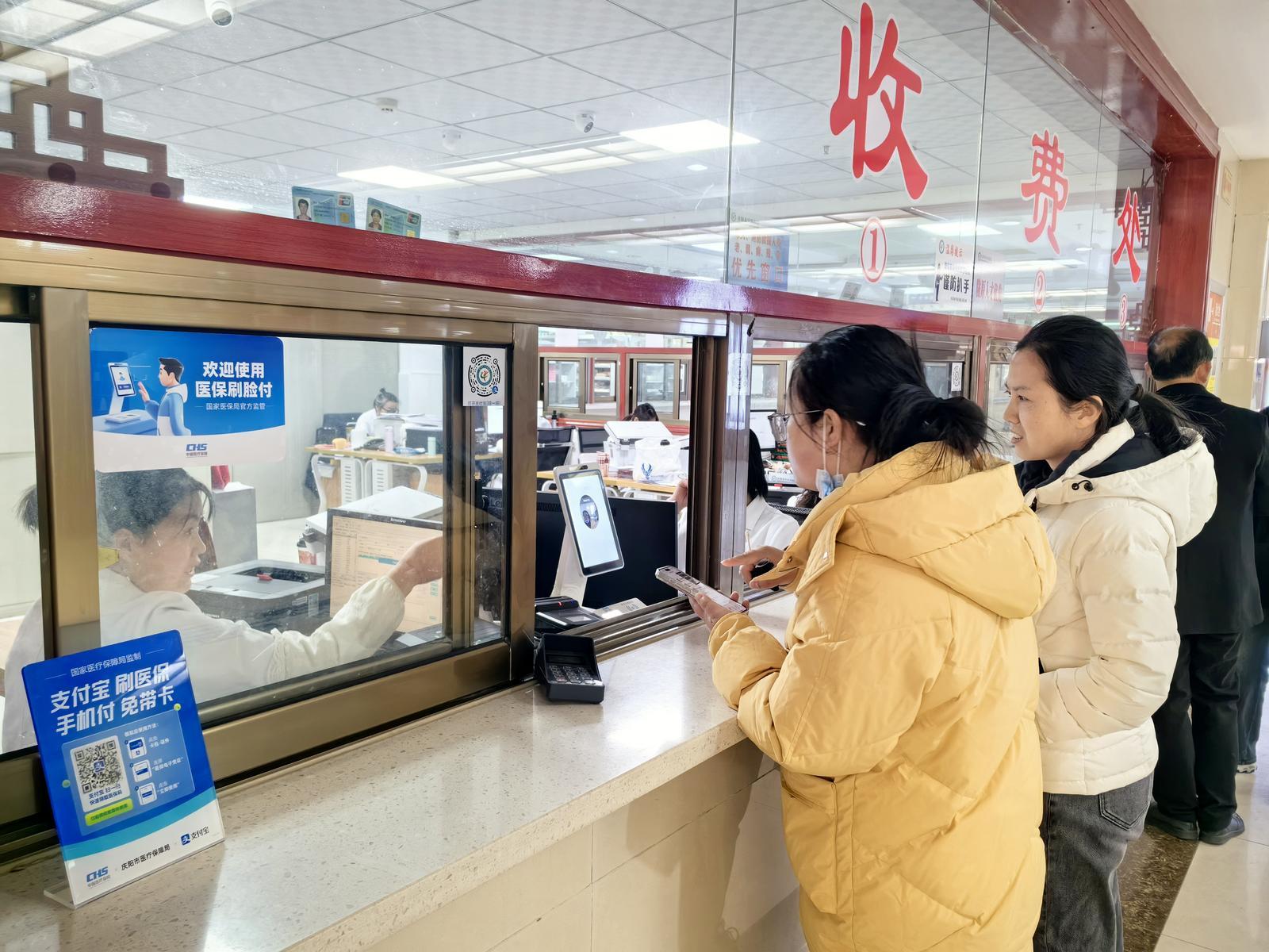 市民在慶陽市中醫(yī)醫(yī)院醫(yī)保窗口使用醫(yī)?!八⒛槨敝Ц断到y進行醫(yī)保結算。慶陽融媒記者 黃飛 攝