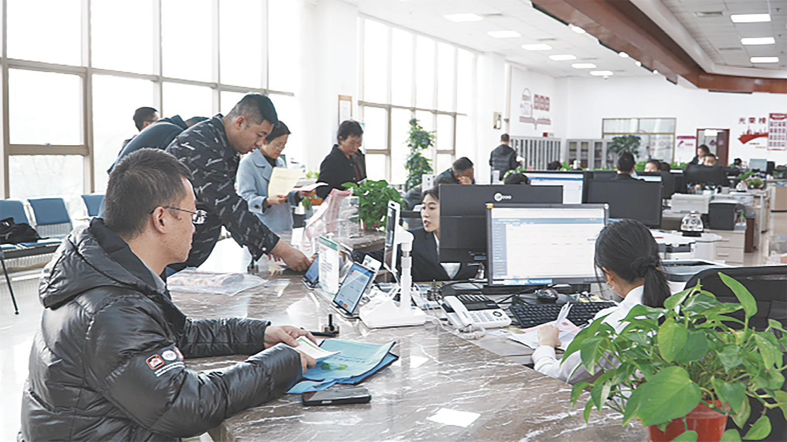 市民在市政務服務中心醫(yī)療保障窗口辦理醫(yī)保結算業(yè)務。