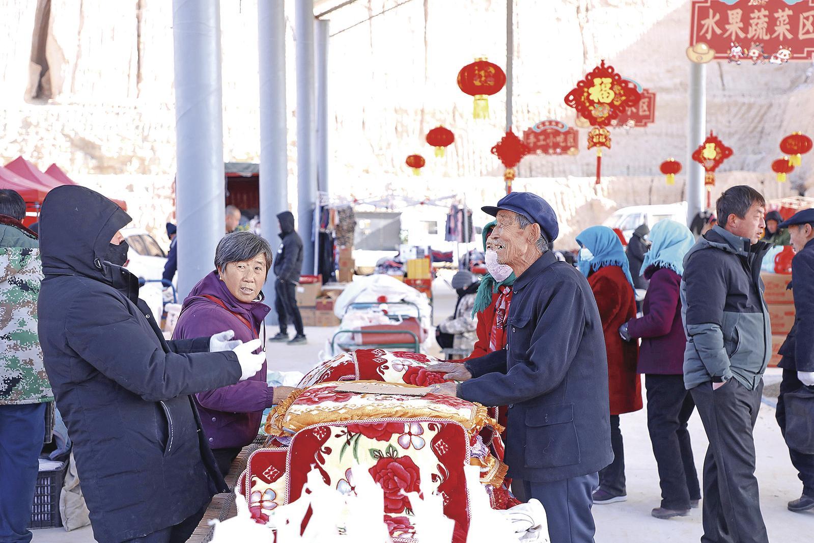 群眾在山城鄉(xiāng)年貨節(jié)上購物。