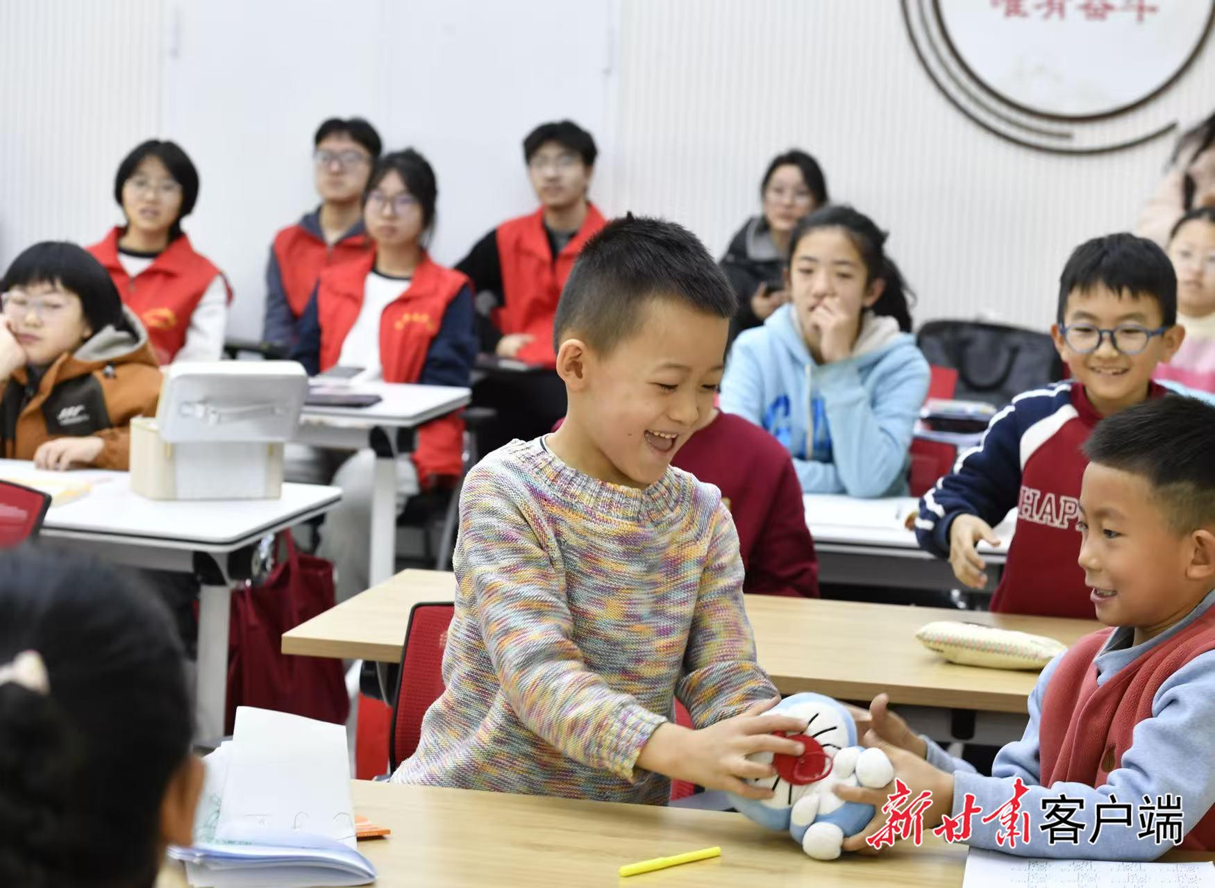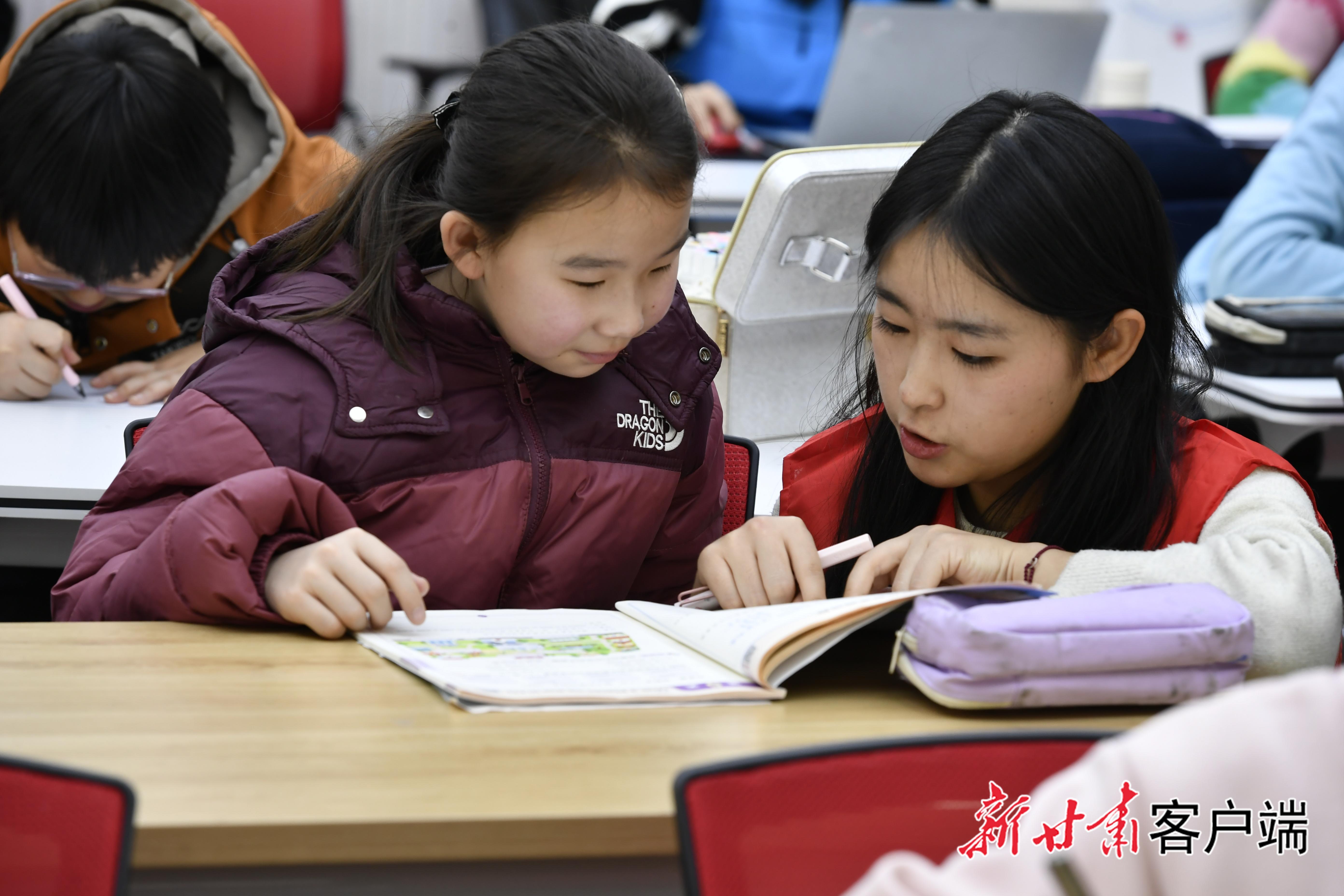 大學(xué)生志愿者指導(dǎo)孩子完成寒假作業(yè)。新甘肅·甘肅日報記者 裴強
