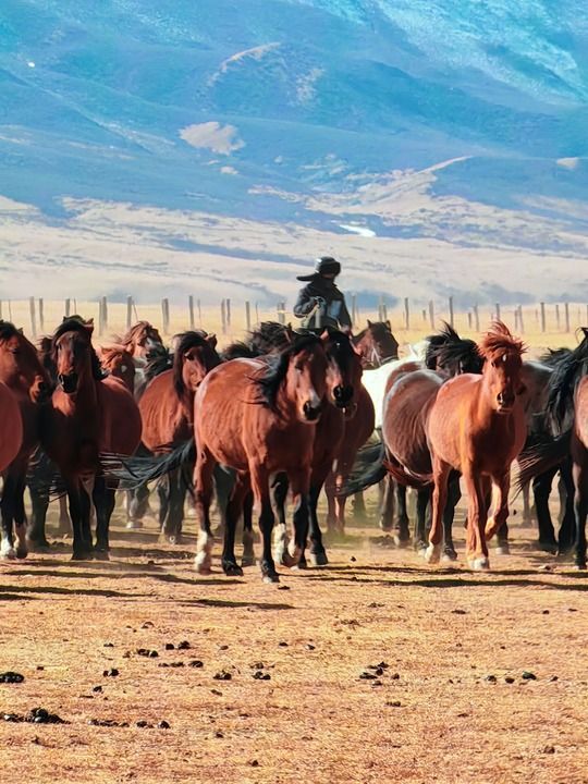 9點半,體弱的馬群已飲水歸來。此時,大隊馬群方才正式出發(fā)。蹄聲清脆,富有節(jié)奏,牧馬人之間依靠口哨與手勢交流,不過分驅(qū)趕,不過度干預(yù)。馬識途,頭馬領(lǐng)路,整個馬群在看似隨意的引導(dǎo)中有序流動。