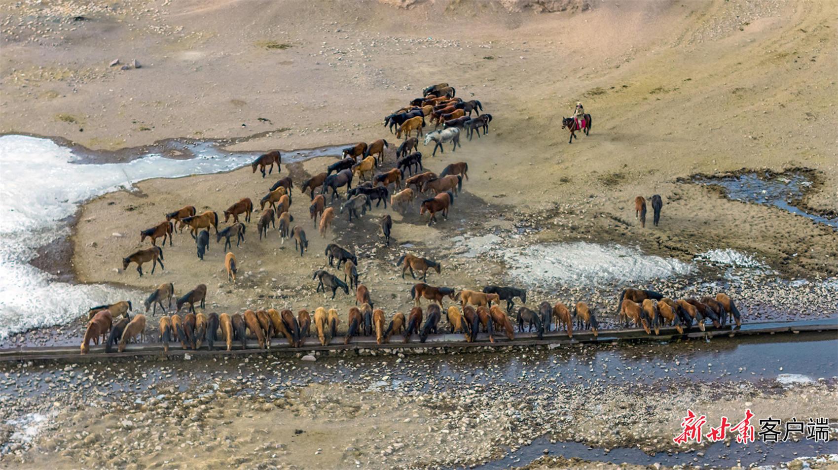 山丹馬場(chǎng)內(nèi),馬群正在飲水。文中圖片除署名外均由新甘肅·甘肅日?qǐng)?bào)記者田蹊攝