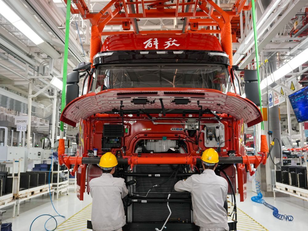 2026年1月4日,工人在位于吉林省長春市的一汽解放J7整車智能工廠裝配車輛。新華社記者 張楠 攝