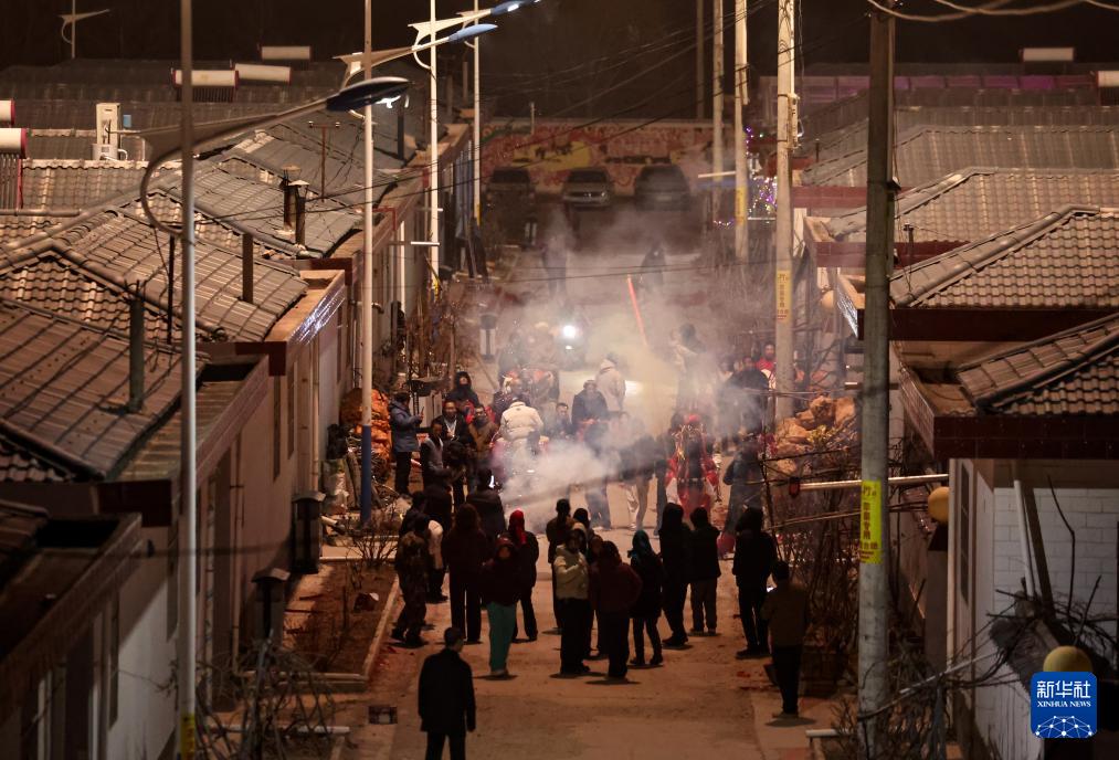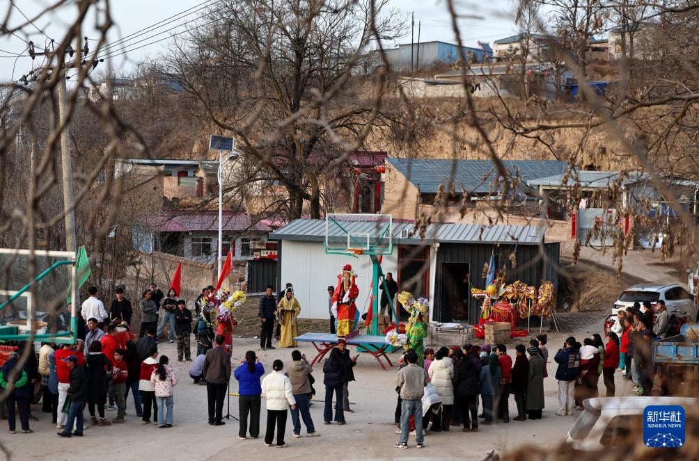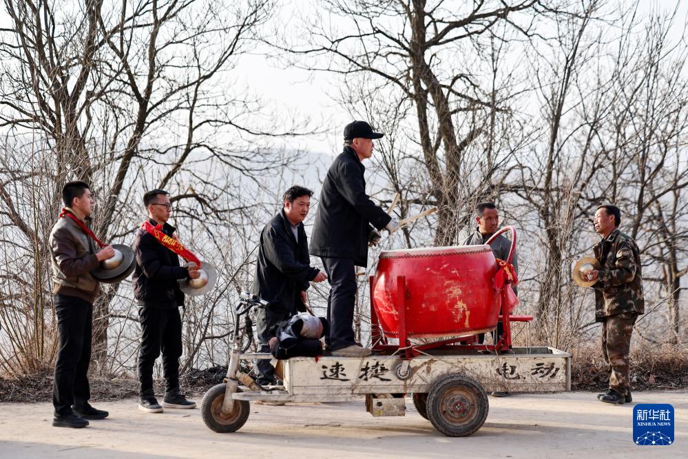2月21日,在甘肅省靜寧縣賈河鄉(xiāng)侯山村,村民在敲鑼打鼓。新華社發(fā)(侯崇慧攝)