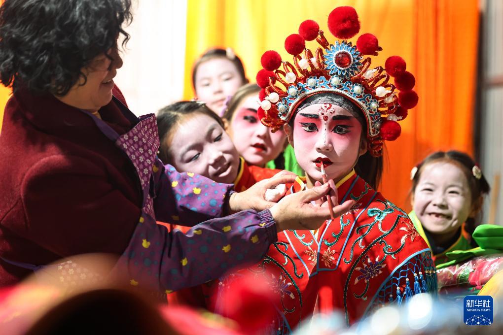 2月21日,在甘肅省靜寧縣李店鎮(zhèn)五方河村,社火隊(duì)員在為表演做準(zhǔn)備。新華社發(fā)(侯崇慧攝)