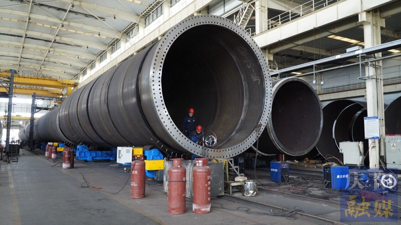 “今年初六我們全員到崗,初七正式復產,這個春節(jié)‘不打烊’”。王曉飛介紹,為搶抓新能源產業(yè)發(fā)展機遇,他們春節(jié)前就做好了充分準備,不僅協調了充足的原材料供應,還通過輪休調班確保節(jié)后迅速復產。緊張忙碌的背后,是沉甸甸的工程業(yè)績,目前,企業(yè)已完成甘肅禮縣固城二期100MW風力發(fā)電項目,內蒙古自治區(qū)鄂爾多斯市杭錦旗600MW風電場工程塔筒制造與服務,華能慶陽風光綜合新能源示范項目二批風光項目,華池縣500MW新能源項目塔架生產等。