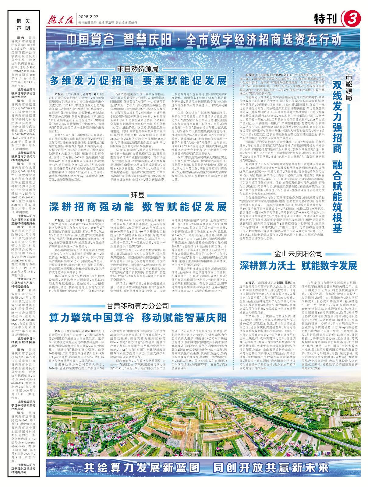 甘肅移動算力分公司負責人表示,2026年,企業(yè)將聚焦市政府工作報告中“凝心聚力塑造‘中國算谷·智慧慶陽’,加快推動數字經濟向新突破”的年度重點任務,迅速行動起來,在夯實算力底座至15萬PFlops、推進“算力飛地”合作模式,跑滿國產算力集群、全面提升國產算力資源使用效能,讓AI在慶陽“有用”、構建智慧政務服務體系三方面集中發(fā)力,全面支撐慶陽數字經濟邁向更高能級。