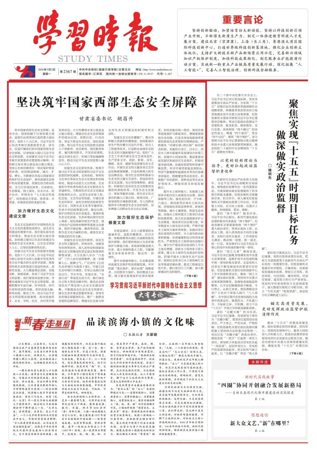 筑牢國家西部生態(tài)安全屏障,是黨中央、國務院賦予甘肅的重大使命,是我們必須堅決扛起的重大政治責任。黨的十八大以來,習近平總書記每次考察甘肅都要看生態(tài)、講生態(tài),反復叮囑我們筑牢國家西部生態(tài)安全屏障。甘肅將深入踐行習近平生態(tài)文明思想,全面落實習近平總書記考察甘肅重要講話重要指示精神,牢固樹立綠水青山就是金山銀山理念,堅持山水林田湖草沙一體化保護和系統治理,協同推進降碳、減污、擴綠、增長,不斷健全祁連山國家級自然保護區(qū)生態(tài)保護、黃河流域生態(tài)保護和高質量發(fā)展、荒漠化綜合防治機制,全力打好綠色轉型、污染防治、生態(tài)修復、國土綠化、治水興水、防沙治沙、環(huán)境安全“七大標志性戰(zhàn)役”,加快建設天更藍、地更綠、水更清、環(huán)境更優(yōu)質的美麗甘肅。
